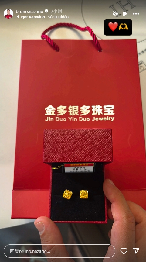 04月26日訊 昨日是河南外援納薩里奧與妻子結(jié)婚12周年紀(jì)念日,納薩里奧給妻子買了一對足金耳飾。